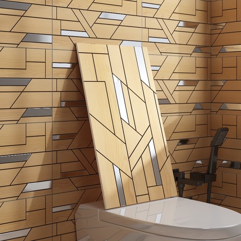 Mosaic Wood Grain WPC 3D Modern Minimalist Wall Decals Self-Adhesive Waterproof Moisture-Proof Wall Stickers